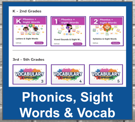 Students have been enrolled into the Keyboarding and Phonics/Vocabulary programs from EdClub. Different levels for either program can be added to a student account for practice.